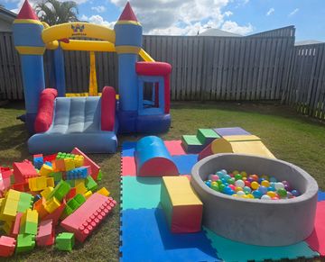 Toddler jumping castle, softplay x8, large blocks, small ballpit with balls & mats